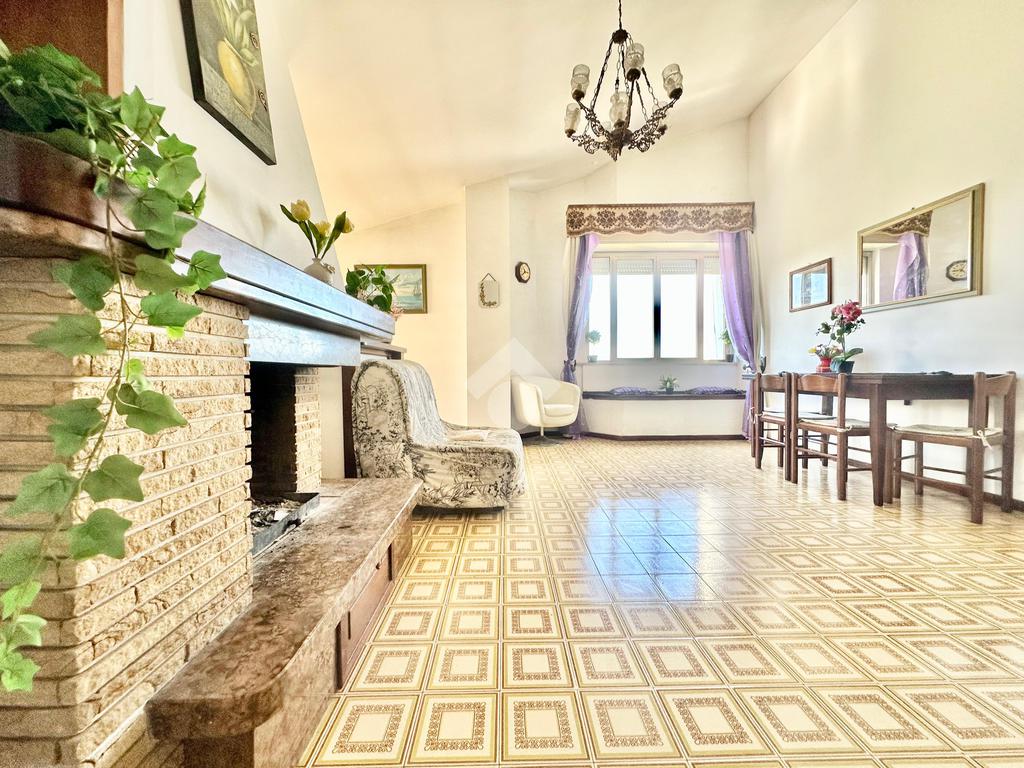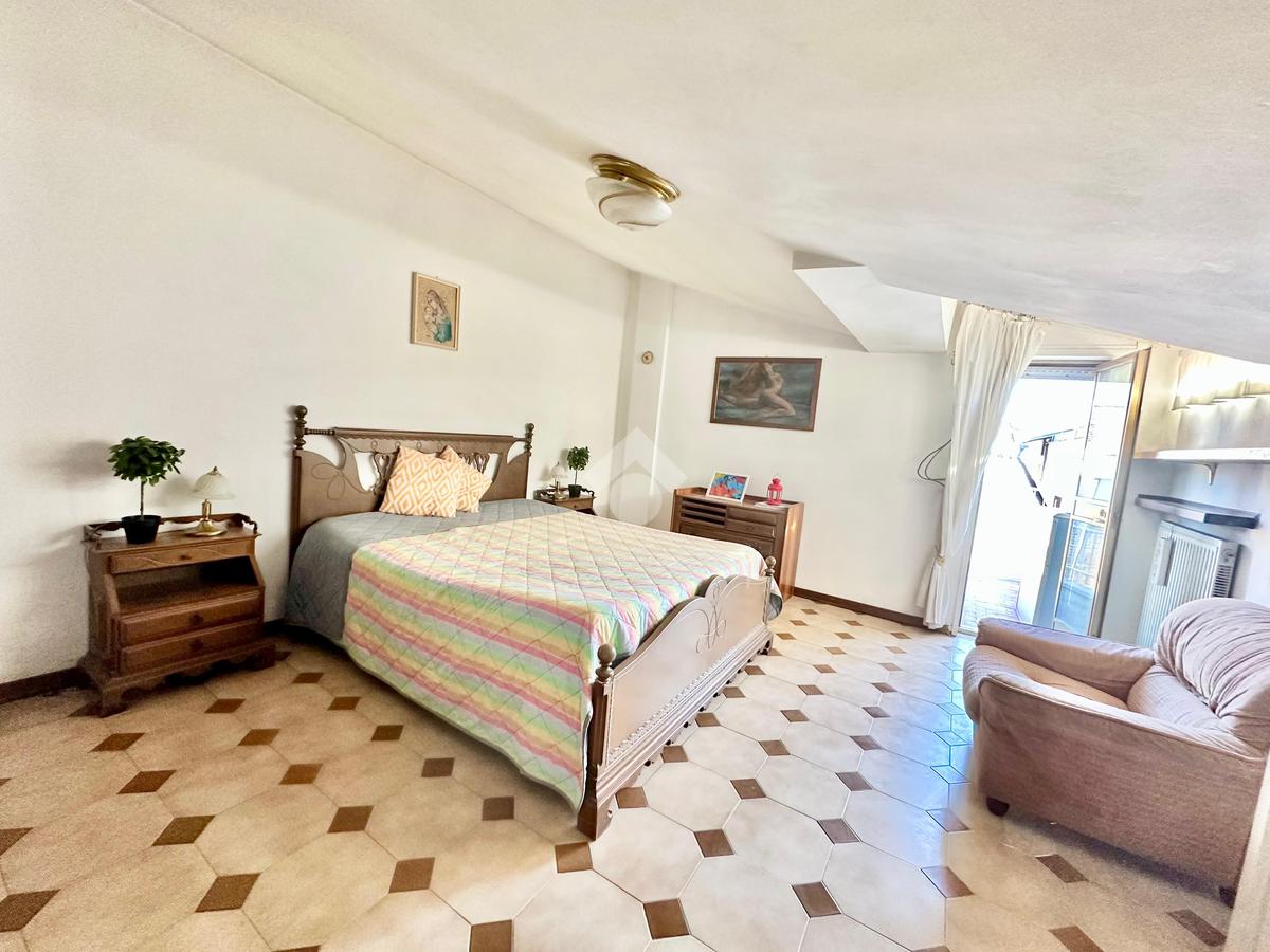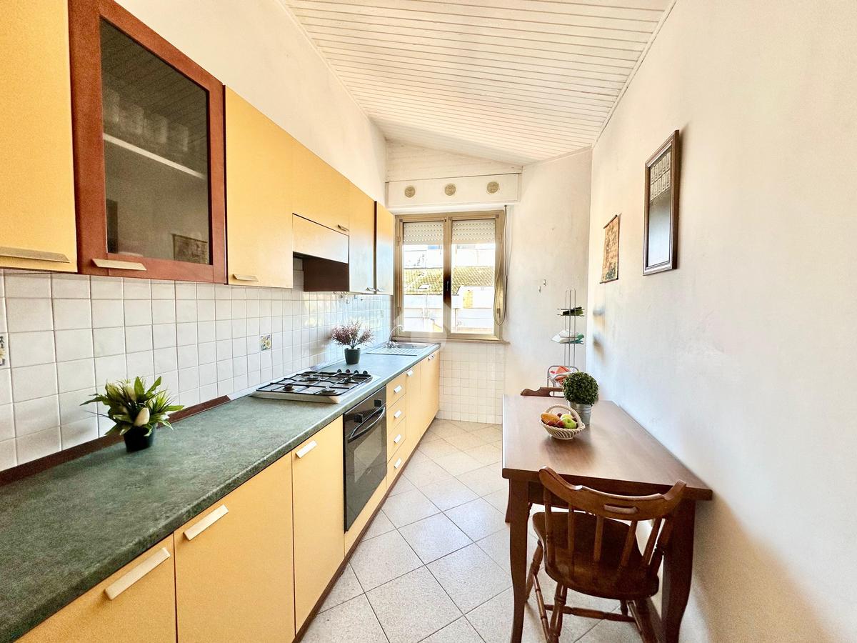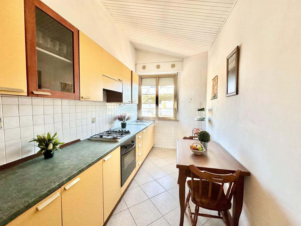 Spoleto, Via Marconi proponiamo in vendita attico di tre vani con ascensore, zona vicina a tutti i servizi, vista mozzafiato verso le colline Umbre in giorni di bel tempo si vede fino ad Assisi, l'appartamento è così composto: grande salone angolare con vista e camino funzionante, cucina abitabile arredata, due camere da letto, disimpegno, bagno con possibilità di creare un secondo bagno, armadi a muro, in parte mobiliato, due terrazzi più veranda, riscaldamento autonomo, chiude la proprietà garage e cantina.