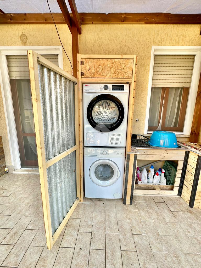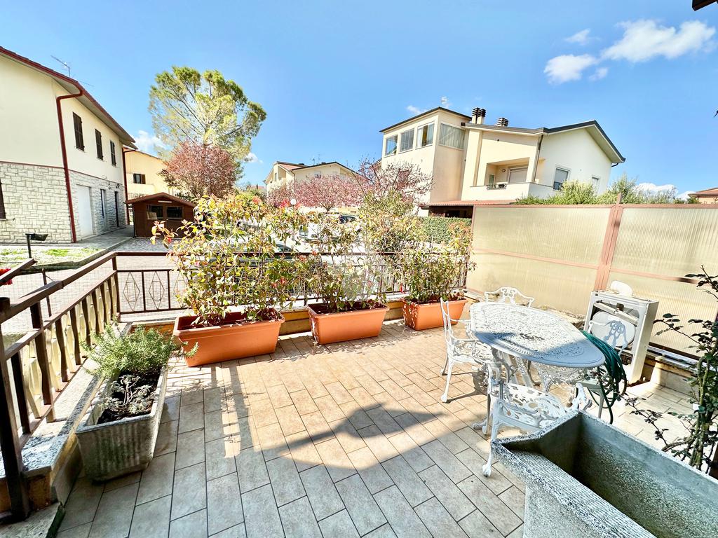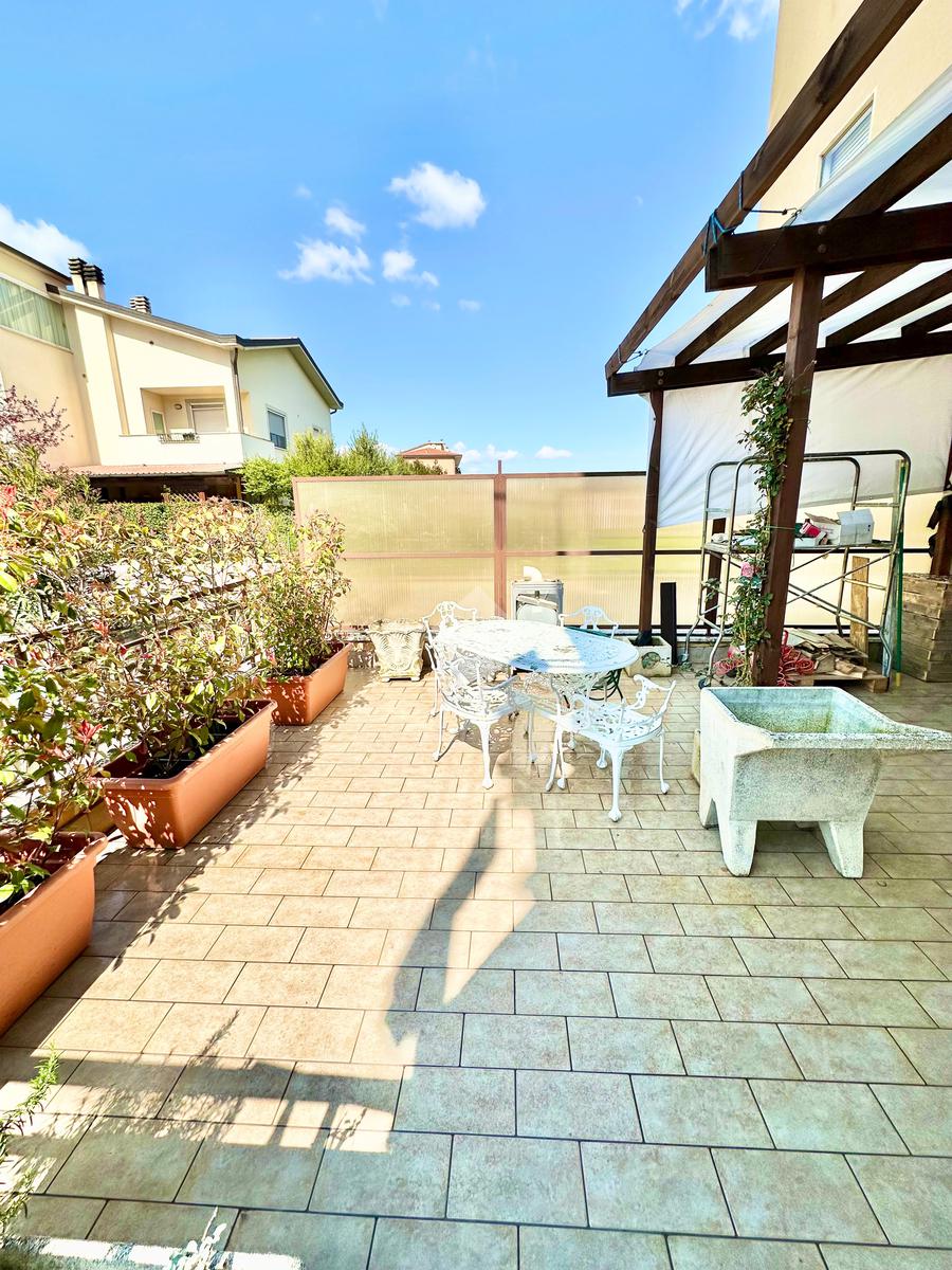 San Giovanni di Baiano. Appartamento ristrutturato, posto al piano terra con ampio terrazzo abitabile di circa 40 più garage e cantina. L'immobile è stato ristrutturato di recente ed è così composto: soggiorno, cucina in muratura a vista, 2 ampie camere da letto, bagno e grande terrazzo di circa 40 disposto per tutta la lunghezza dell'appartamento. Grazie alle dimensioni, questo spazio esterno potrebbe essere tranquillamente equiparato ad un giardino pavimentato. Al piano interrato troviamo un garage con cantina. La ristrutturazione ha riguardato gli impianti tecnologici, la cucina, le porte, il bagno, la pavimentazione ed i rivestimenti