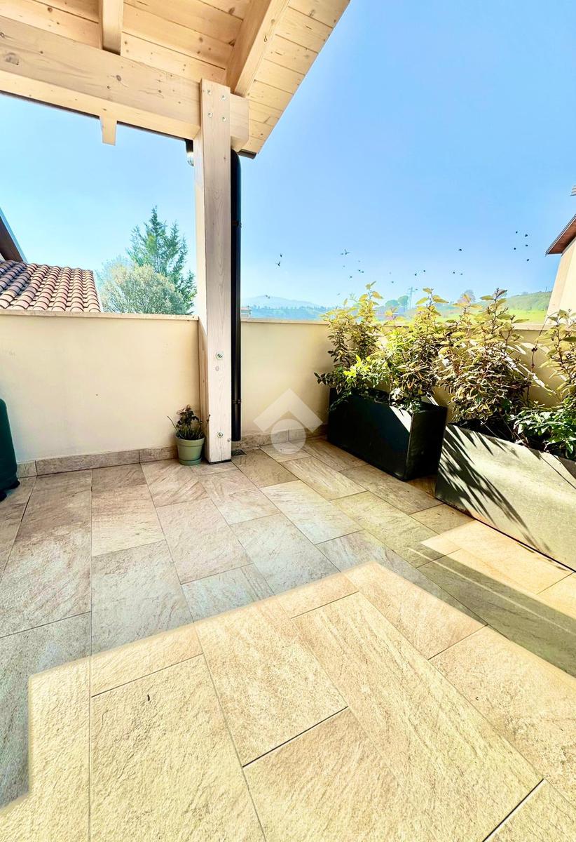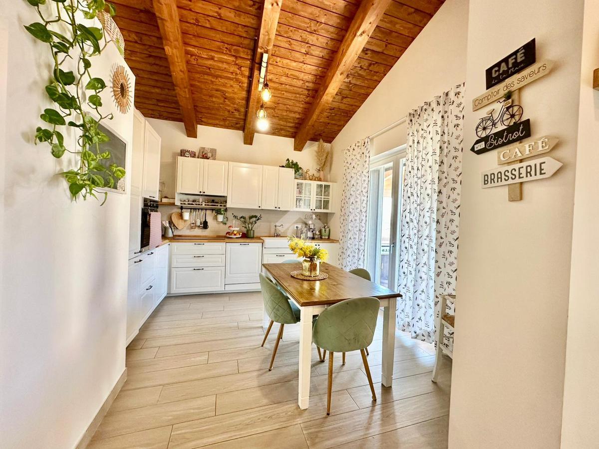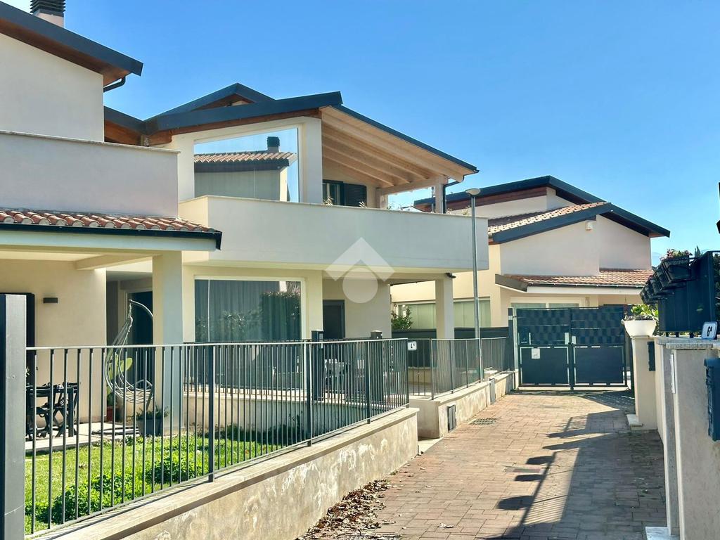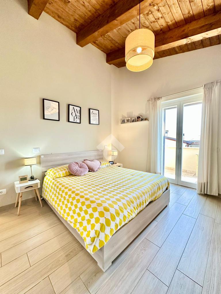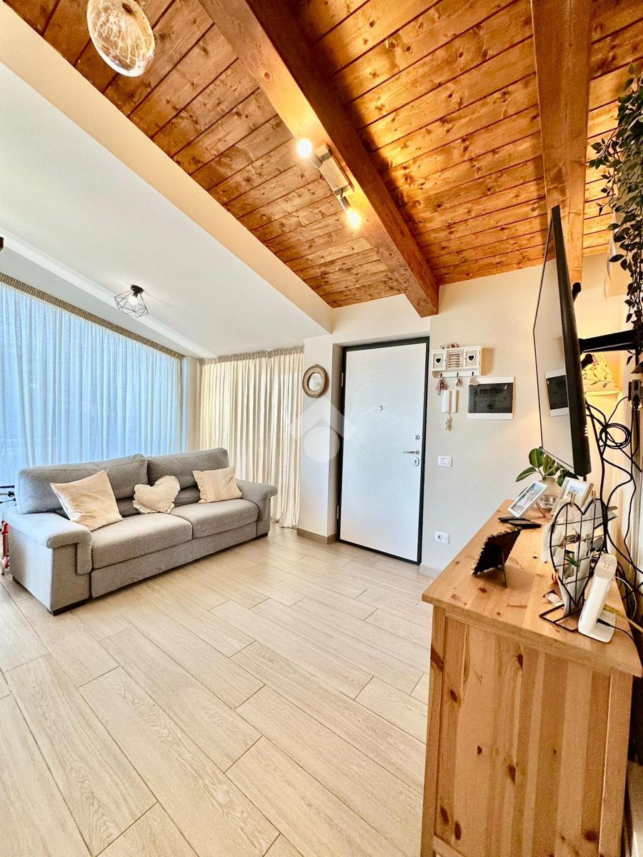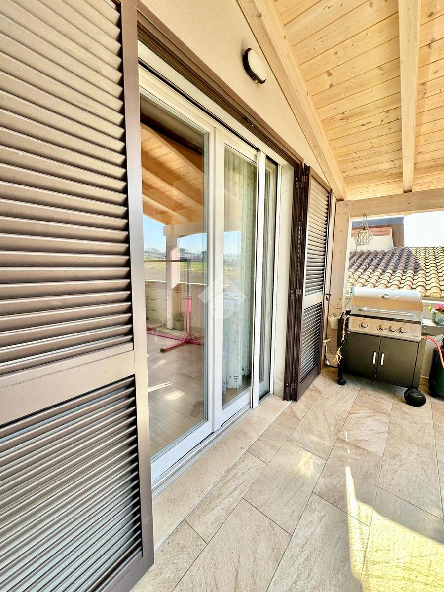 Zona San Venanzo. Porzione di bifamiliare, 5 anni di vita, posta al piano primo con ampio terrazzo abitabile. La casa è tutta in ottimo stato, sono stati usati materiali di ottima fattura, impianto di riscaldamento a pavimento, infissi di ultima generazione ed è composta da ampio soggiorno, cucina abitabile, 2 camere da letto, bagno e due terrazzi di cui uno coperto ed abitabile. Sono presenti grandi aperture vetrate che donano luminosità e panoramicità. Dispone inoltre di un garage al piano interrato. E' situata all'interno di un quartiere residenziale nuovo e curato in ogni minimo dettaglio. Nessuna spesa di condominio in quanto la casa ha ingresso indipendente e libera su 4 lati. Visionabile in qualsisasi momento.