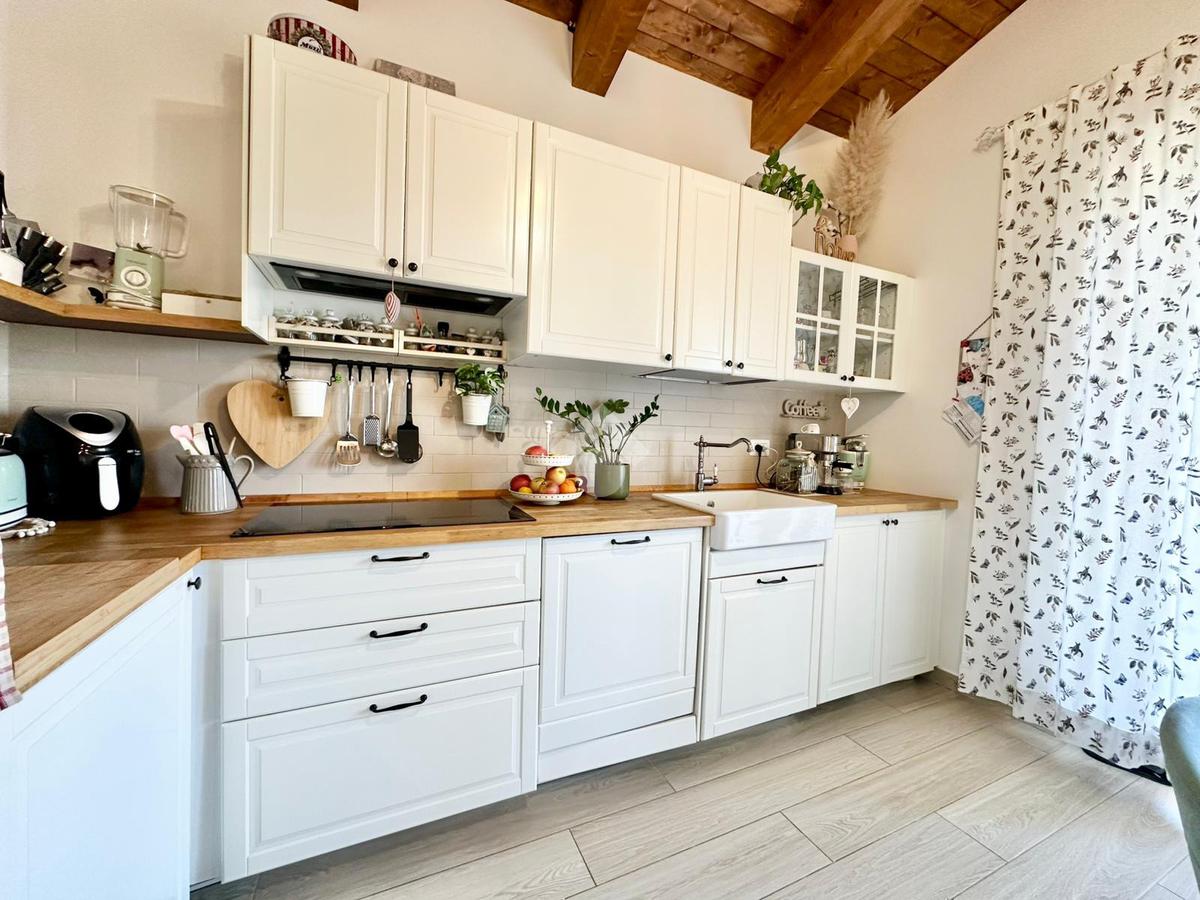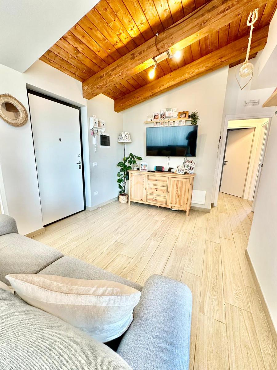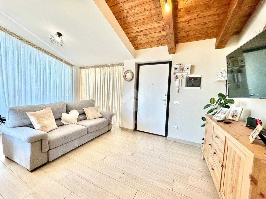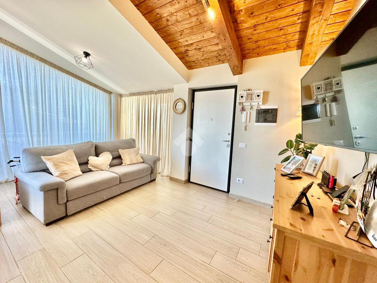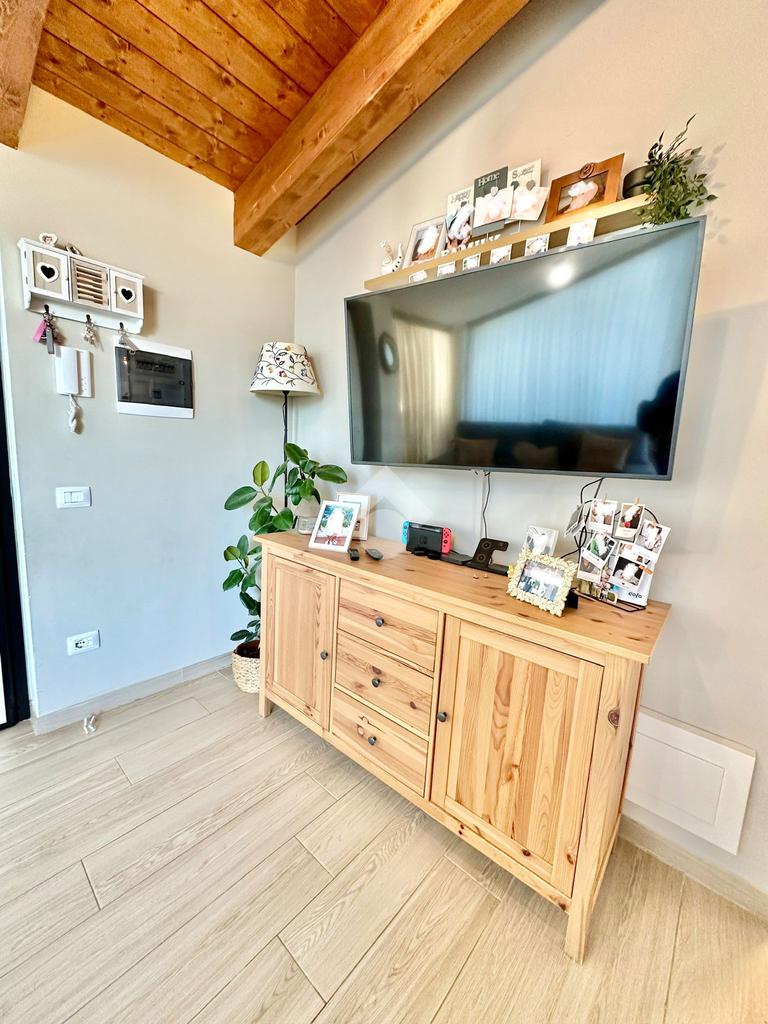 Zona San Venanzo. Porzione di bifamiliare, 5 anni di vita, posta al piano primo con ampio terrazzo abitabile. La casa è tutta in ottimo stato, sono stati usati materiali di ottima fattura, impianto di riscaldamento a pavimento, infissi di ultima generazione ed è composta da ampio soggiorno, cucina abitabile, 2 camere da letto, bagno e due terrazzi di cui uno coperto ed abitabile. Sono presenti grandi aperture vetrate che donano luminosità e panoramicità. Dispone inoltre di un garage al piano interrato. E' situata all'interno di un quartiere residenziale nuovo e curato in ogni minimo dettaglio. Nessuna spesa di condominio in quanto la casa ha ingresso indipendente e libera su 4 lati. Visionabile in qualsisasi momento.